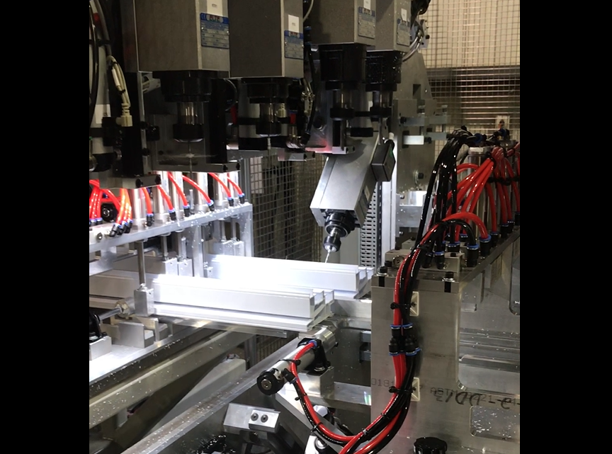 - Machine the frame and the mullion to install the lock, the handle hardware and localization of hole of hardware.