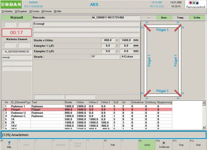 The automatic adjustment of the fusing time to different cross sections of profiles, the click-stop system and the integrated frame limitation of 40 to 200 mm (optionally 240 mm) ensure excellent flexibility. Electronic positioning of the axes X and Y via AC servo-motors which are disconnected during the welding process (no position control).