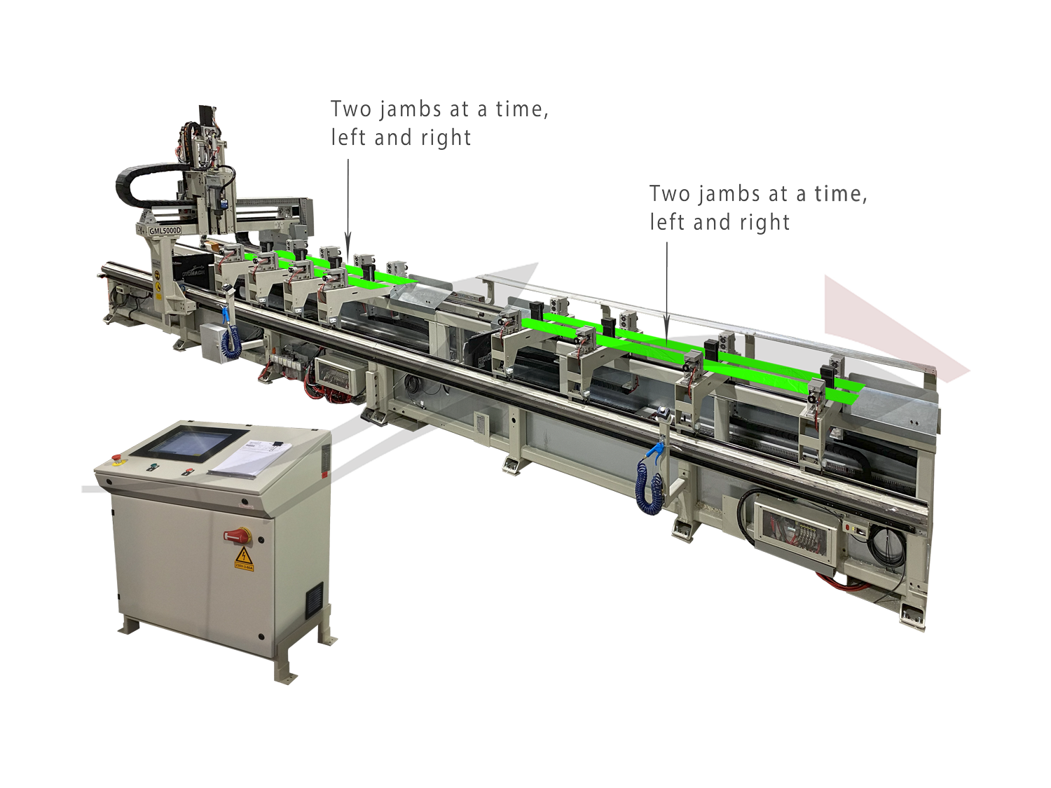 • Capacity of two 11 inch wide pieces by using independent clamping cylinders