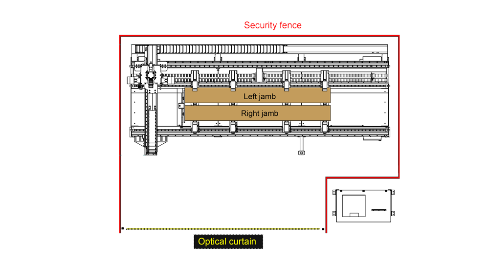 • Light curtain with fencing on sides and rear
